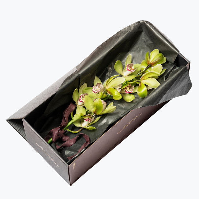 Gaveeske med grønn orkidé